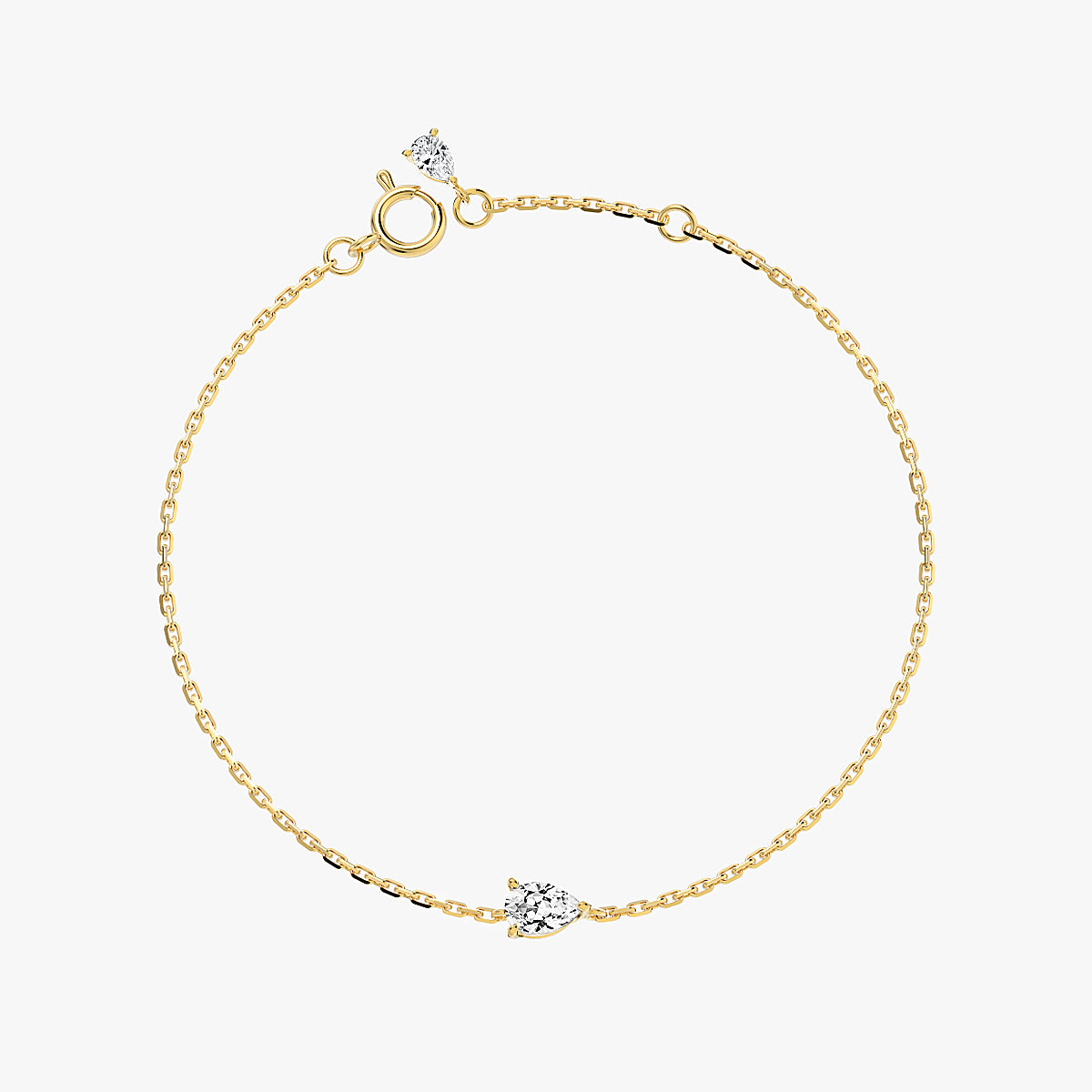 14k 옐로우 골드에 랩 다이아몬드 0.3캐럿과 0.1캐럿 스톤이 앞뒤로 세팅된 팔찌 입니다. 페어 컷의 랩 다이아몬드가 모던하면서 클래식하게 연출 시켜줍니다.