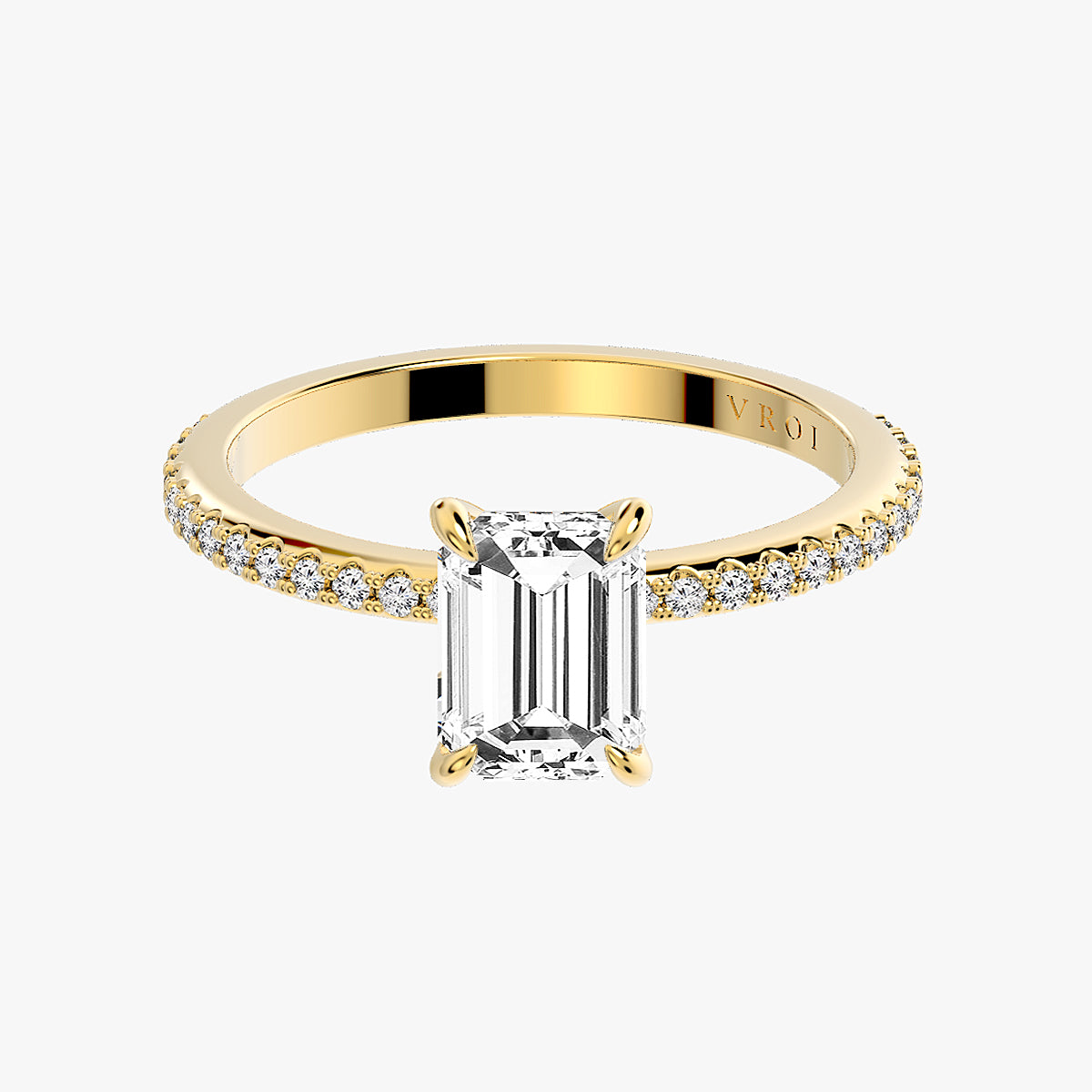 14k 옐로우 골드에 에메랄드 컷 다이아몬드로 구성된 클래식 약혼 파베 링