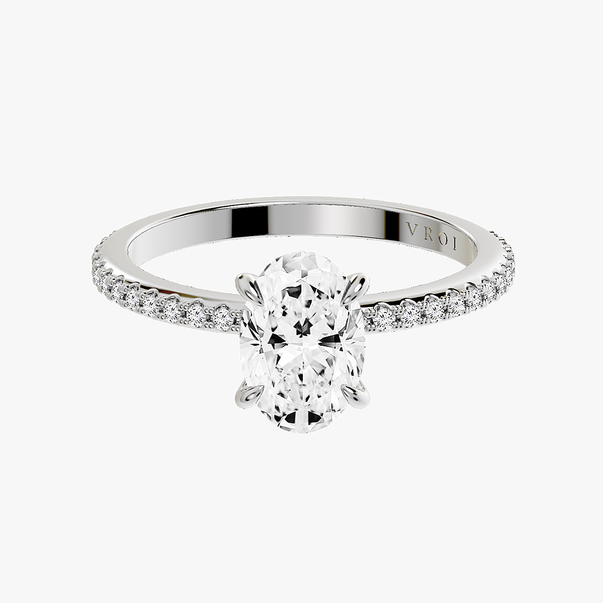 14k 화이트 골드에 오벌 컷 다이아몬드로 구성된 클래식 약혼 파베 링