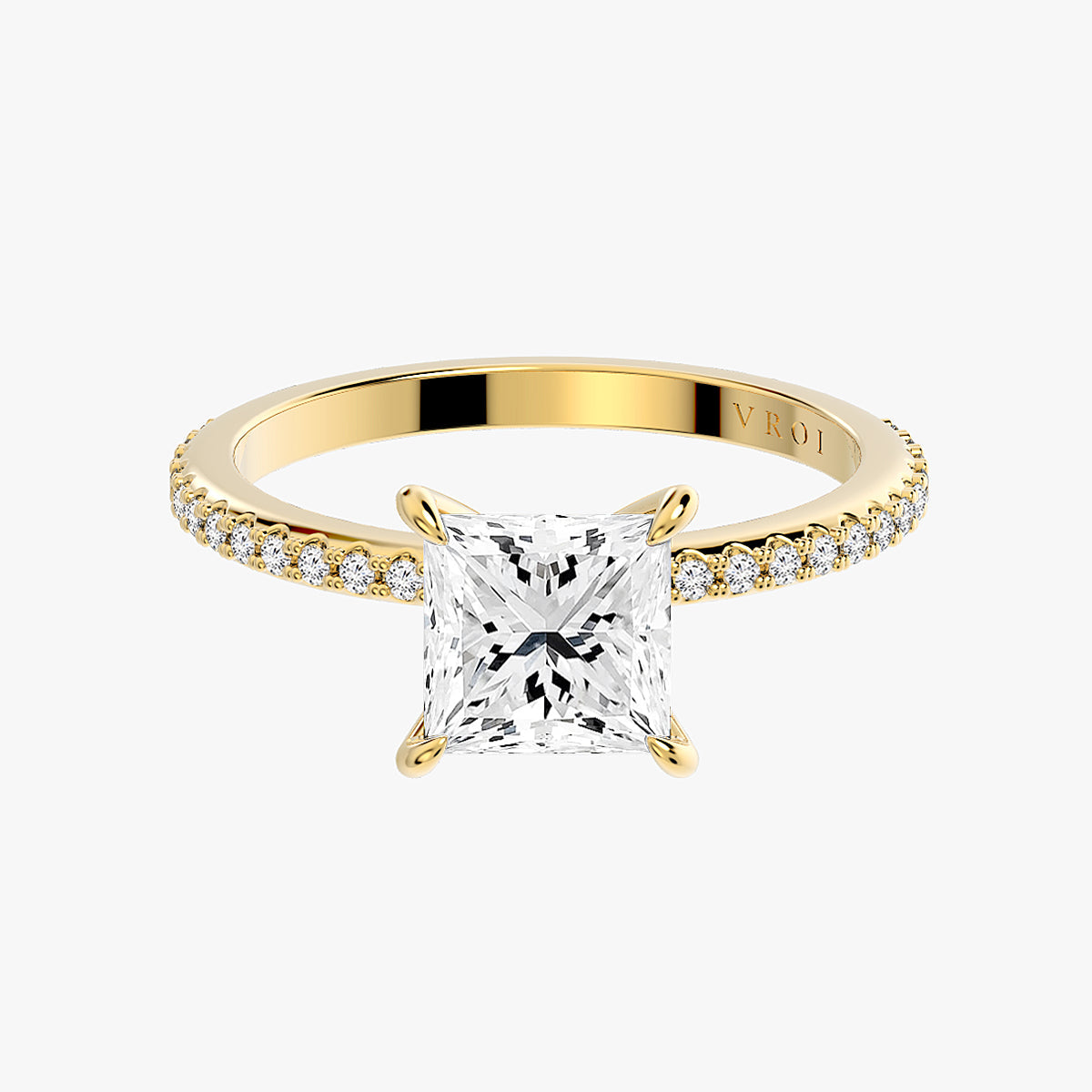 14k 옐로우 골드에 프린세스 컷 다이아몬드로 구성된 클래식 약혼 파베 링
