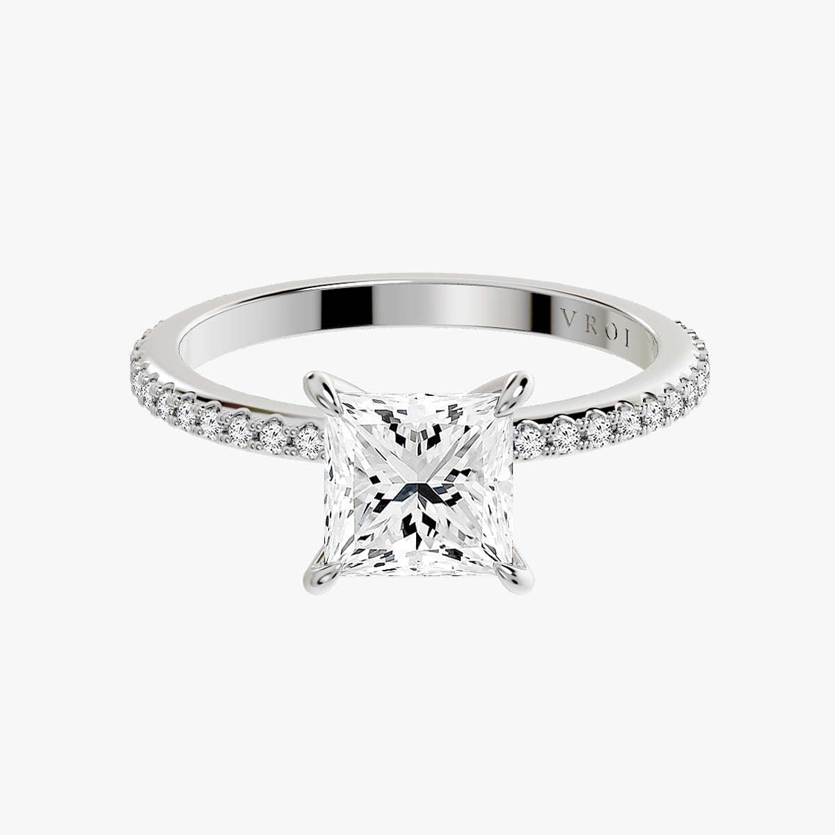 14k 화이트 골드에 프린세스 컷 다이아몬드로 구성된 클래식 약혼 파베 링
