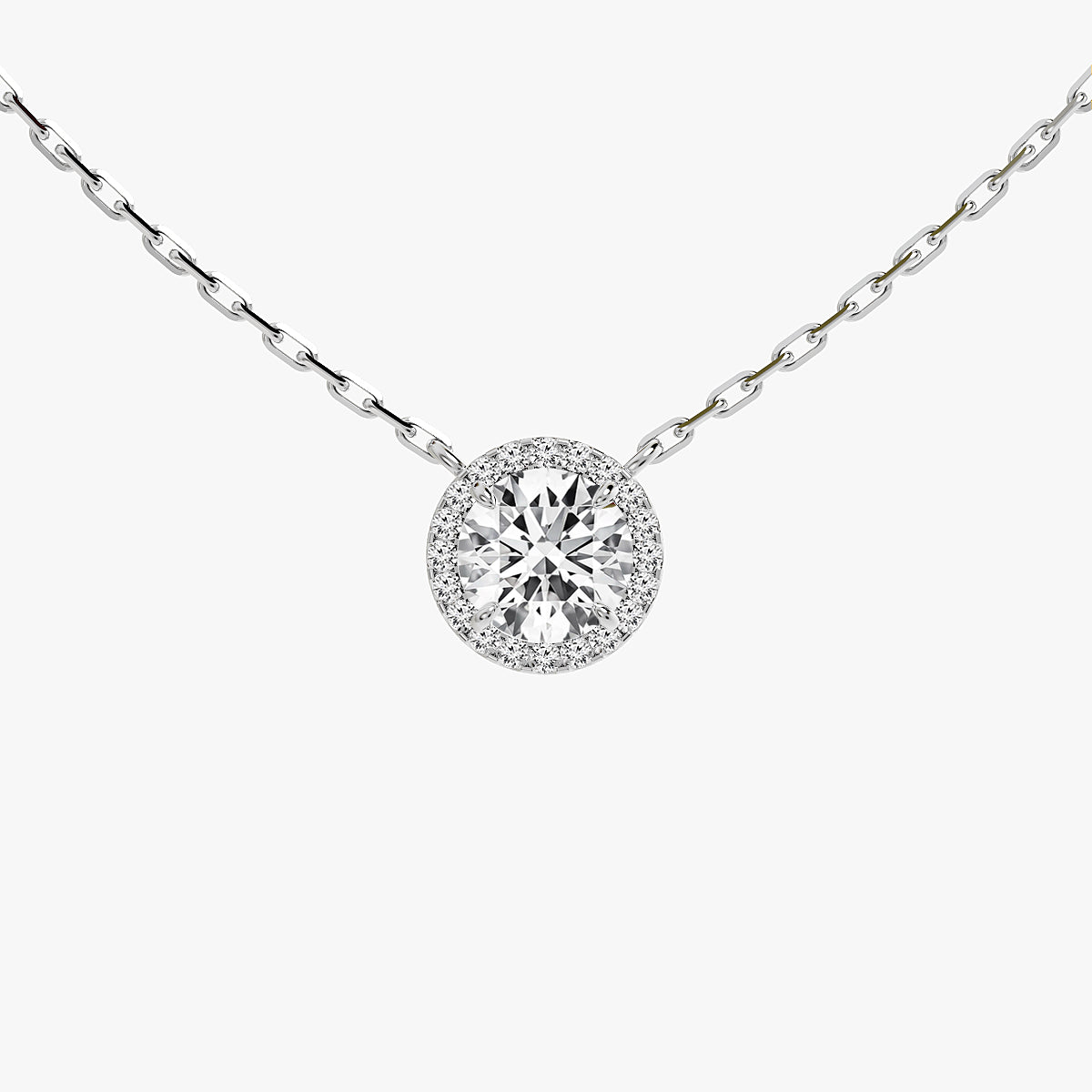 헤일로 목걸이는 중앙 스톤 주위를 맴도는 다이아몬드로, 빈티지에서 영감을 받은 디자인을 완벽하게 강조하는 펜던트가 특징입니다.