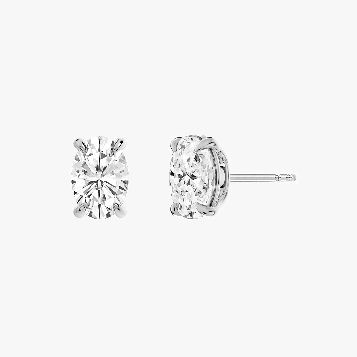 14k 화이트 골드에 오벌 컷 다이아몬드로 구성된 솔리테어 스터드 이어링