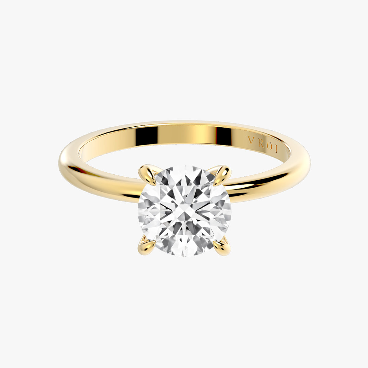 14k 옐로우 골드에 라운드 브릴리언트 컷 다이아몬드로 구성된 클래식 약혼 링
