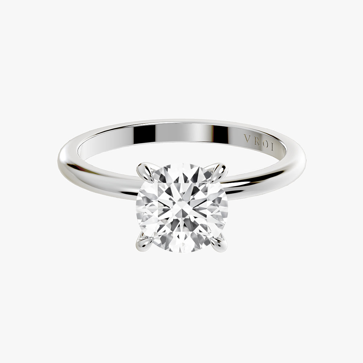 14k 화이트 골드에 라운드 브릴리언트 컷 다이아몬드로 구성된 클래식 약혼 링